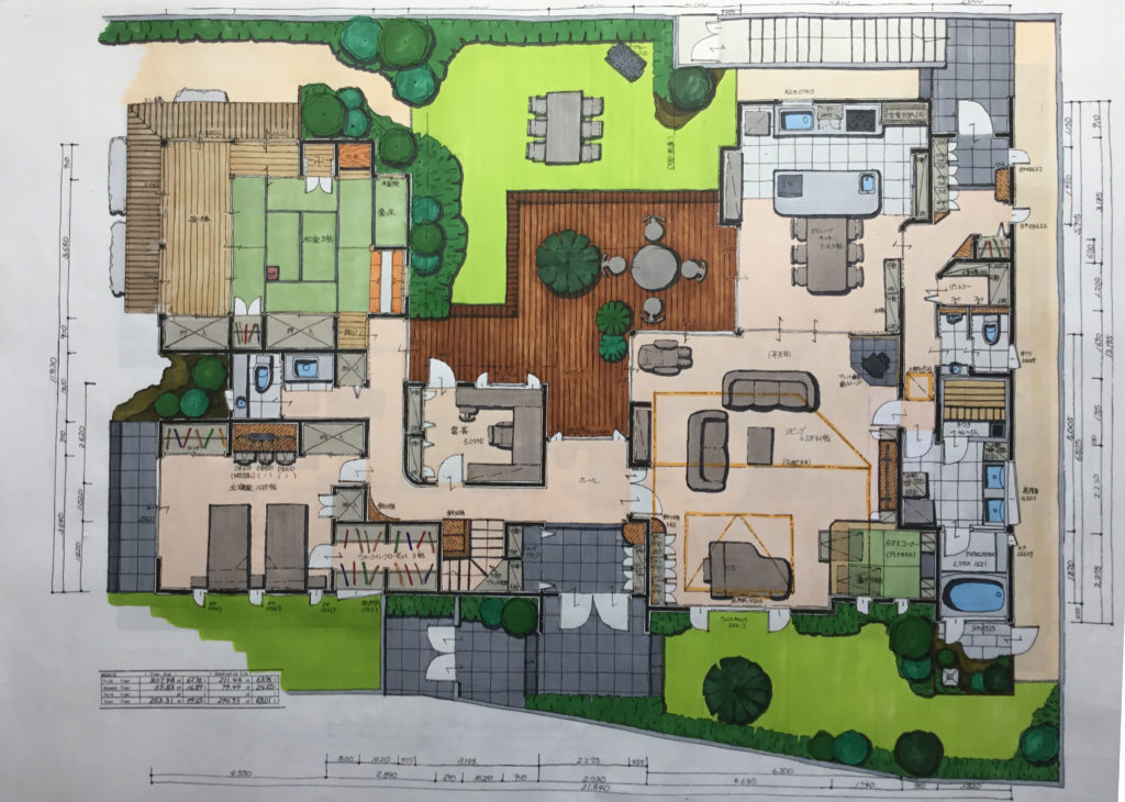 すべてが「住む人の健康と心地よさのため」に。丁寧に描かれた図面は、設計士としての想いの結晶です。